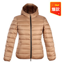 阿诗玛 女士浅金咖色连帽常规款羽绒服